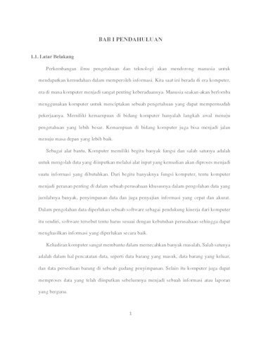 Perkembangan ilmu pengetahuan dan teknologi akan mendorong manusia untuk mendapatkan kemudahan dalam memperoleh informasi. Kita saat ini berada di era komputer, era di mana komputer menjadi sangat penting keberadaannya. Manusia seakan-akan berlomba menggunakan komputer untuk menciptakan sebuah pengetahuan yang dapat mempermudah pekerjaanya. Memiliki kemampuan di bidang komputer hanyalah langkah awal menuju pengetahuan yang lebih besar. Kemampuan di bidang komputer juga bisa menjadi jalan menuju masa depan yang lebih baik.