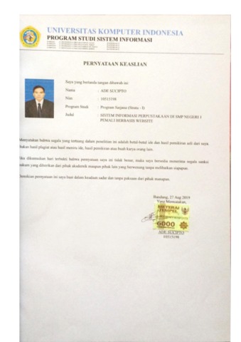UNIKOM_Ade Sucipto_LEMBAR PERNYATAAN KEASLIAN.pdf - Published Version
