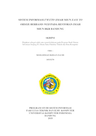Zalmi, Mohammad Ikhsan (2019) Sistem Informasi I’m Eto (Imah Miun Easy To Order) Berbasis Web Pada Imah Miun Bkr Bandung. Other thesis, Universitas Komputer Indonesia.