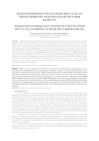 Makanan adalah kebutuhan pokok setiap makhluk hidup. Bagi manusia untuk mendapatkan makanan bisa dengan cara memasak sendiri atau dengan cara membeli makanan yang sudah jadi melalui restoran-restoran atau rumah makan yang menyediakan banyak pilihan menu makanan yang akan diberikan kepada pelanggan. Permasalahan yang terjadi dalam proses pemesanan makanan pada Restoran Imah Miun Sunda & Seafood BKR Bandung adalah pihak restoran harus menyediakan banyak buku menu untuk diberikan kepada setiap pelanggan yang datang ke restoran dan akan melakukan pemesanan makanan. Terkadang pada buku menu yang telah diberikan, pelanggan tidak mendapatkan informasi rinci mengenai makanan yang tersedia seperti bahan yang digunakan, cara pemasakan dan informasi penting lainnya untuk pelanggan. Pada saat pelanggan telah selesai melakukan pemilihan makanan yang akan dipesan pelayan diharuskan menulis daftar pesanan pelanggan pada sebuah buku nota kecil, yang membutuhkan ketelian dalam penulisan sehingga tidak terjadinya kesalahan penulisan daftar pesanan pelanggan. Serta apabila pihak restoran memiliki pilihan makanan baru yang akan dimasukkan kedalam daftar menu, maka pihak restoran harus melakukan pembuatan ulang buku menu baru yang cukup menghabiskan uang dan waktu dalam pengerjaan masalah tersebut. Metodologi pendekatan yang ingin dibawa oleh Penulis dalam masalah ini yaitu pendekatan objek yang deduktif untuk menarik satu atau lebih kesimpulan yang akan dipaparkan berdasarkan premis yang diberikan. Untuk metode pengembangan sistem, penulis menggunakan model prototype sehingga saat diterapkan untuk kondisi yang beresiko tinggi dimana masalah-masalah tidak terstruktur dengan baik, terdapat flutuasi kebutuhan pemakai yang berubah dari waktu ke waktu atau yang tidak terduga, bila interaksi dengan pemakai menjadi syarat mutlak dan waktu yang tersedia sangat terbatas sehingga butuh penyelesaian yang segera. Dan alat bantu yang digunakan dalam penelitian ini adalah UML Diagram 2.5. Dengan Sistem Informasi I’M ETO (Imah Miun Easy To Order) ini Penulis berharap dapat membantu proses pemesanan makanan bisa menjadi lebih efektif dan efisien dalam pengerjaanya. Dengan Sistem Informasi I’M ETO pada Restoran Imah Miun Sunda & Seafood BKR Bandung diharapkan dapat memberikan inovasi, kontribusi dan terteknologi yang lebih baik dalam proses pemesanan makanan, produksi maupun proses pembayaran setelah diterapkannya sistem ini pada khususnya, serta mendapatkan keuntungan yang lebih pada umumnya dalam berbisnis ataupun berdagang.