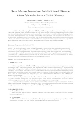 Gunawan, Nadya Minerva (2019) Sistem Informasi Perpustakaan Pada Sma Negeri 2 Bandung Berbasis Website. Other thesis, Universitas Komputer Indonesia.