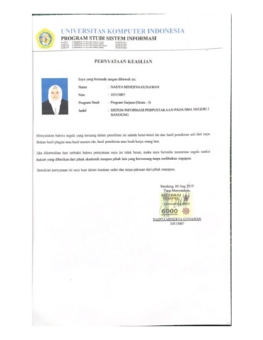 UNIKOM_Nadya Minerva Gunawan_Lembar Pernyataan Keaslian.pdf - Published Version