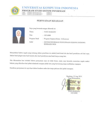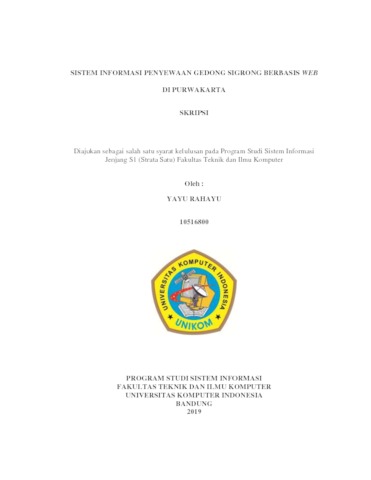 Rahayu, Yayu (2019) Sistem Informasi Penyewaan Gedong Sigrong Berbasis Web Di Purwakarta. Other thesis, Universitas Komputer Indonesia.