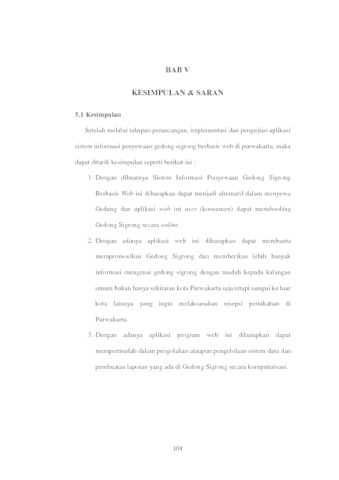Kesimpulan nya bahwa dengan dibangunnya sistem informasi penyewaan gedong sigrong ini diharapkan bisa membantu petugas gedung untuk mengelola data konsumen, laporan-laporan dan data transaksi konsumen, dan dapat mengurangi kesalahan dalam proses pencatatan data dan meminimalisir kesalahan dalam pembuatan laporan.