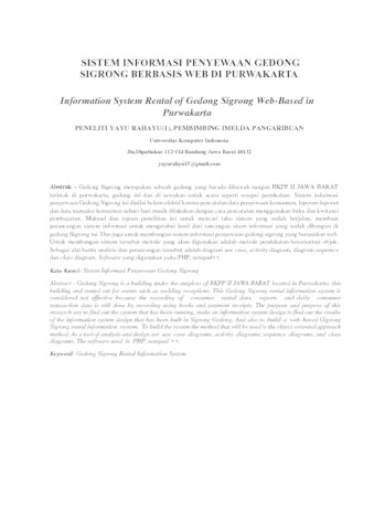 | Uncontrolled Keywords: | Sistem Informasi, Penyewaan, Gedong Sigrong |