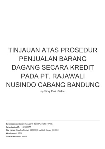 Penelitian Tugas Akhir ini dilakukan di PT. Rajawali Nusindo Cabang Bandung. Tujuan dari penelitian ini yaitu untuk mengetahui prosedur penjualan barang dagang secara kredit, bagian terkait dalam prosedur penjualan barang dagang secara kredit dan dokumen yang digunakan dalam prosedur penjualan barang dagang secara kredit. Metode penulisan dan penyusunan kegiatan penelitian ini menggunakan metode deskriptif. Metode ini dilakukan dengan memberikan gambaran atau analisis tentang judul yang akan diamati. Teknik pengumpulan data yang digunakan adalah observasi, wawancara dan studi pustaka.Kesimpulan dari laporan akhir ini menunjukkan bahwa prosedur penjualan barang dagang secara kredit di PT. Rajawali Nusindo Cabang Bandung telah dilakukan dengan baik, bagian terkait dan dokumen yang digunakan dalam prosedur penjualan barang dagang cukup lengkap. Namun, prosedur untuk menjual barang dagang terhambat jika sistem DTMS Oracle (Distribution Trading Management System) yang terpusat memungkinkan gangguan jaringan yang akan menghambat proses transaksi penjualan di cabang. Upaya yang dilakukan PT. Rajawali Nusindo Cabang Bandung untuk meminimalisir hambatan yang terjadi yaitu menyampaikan keluhan mengenai system applikasi DTMS Oracle agar ditingkatkan menjadi lebih efektif dan efisien.