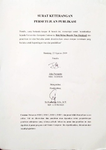 UNIKOM_Joko Purwanto_Surat Keterangan Persetujuan Publikasi.pdf - Published Version