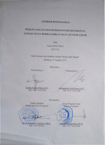 Natsir, Agung Mulia (2019) Perancangan Sistem Rekonstruksi Digital Lingkungan Berdasarkan Data Sensor Lidar. Other thesis, Universitas Komputer Indonesia.