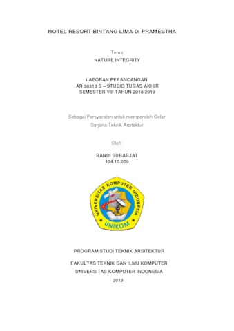 Subarjat, Randi (2019) Hotel Resort Bintang LIma Di Pramestha Tema Nature Integrity. Other thesis, Universitas Komputer Indonesia.