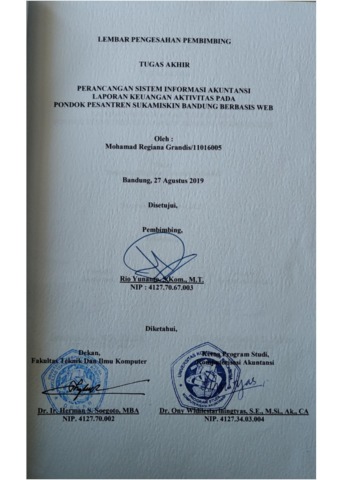 Grandis, Mohamad Regiana (2019) Perancangan Sistem Informasi Akuntansi Laporan Keuangan Aktivitas Pada Pondok Pesantren Sukamiskin Bandung Berbasis Web. Diploma thesis, Universitas Komputer Indonesia.