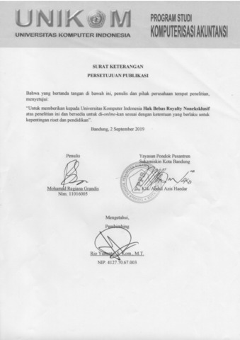 UNIKOM_Mohamad Regiana Grandis_Lampiran Surat Keterangan Persetujuan Publikasi.pdf - Published Version