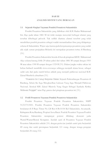 Pondok Pesantren Sukamiskin Bandung yang beralamat di Jalan Raya Timur (AH.Nasution) No. 128 Km. 8 Rt. 01 Rw. 04 Kel. Sukamiskin Kec. Arcamanik Kota Bandung adalah lembaga yang bergerak dibidang pendidikan agama Islam. Kegiatan pencatatan laporan keuangan terutama dalam pencatatan aktivitas keuangan masih dicatat secara tulis tangan. Berdasarkan uraian penelitian di atas, maka peneliti mengambil judul “Perancangan Sistem Informasi Akuntansi Laporan Keuangan Aktivitas pada Pondok Pesantren Sukamiskin Bandung Berbasis Web”. Desain penelitian yang digunakan adalah desain penelitian deskripsi analitis. Metode penelitian yang digunakan adalah metode survei dan deskripsi, teknik pengumpulan data yang digunakan adalah penelitian lapangan yang terdiri dari wawancara dan pengamatan, metode pengembangan sistem yang digunakan adalah metodologi yang berorientasi pada input, proses dan output data. Struktur pengembangan sistem yang digunakan adalah waterfall. Perancangan sistem informasi akuntansi yang digunakan adalah diagram konteks, data flow diagram, kamus data dan flowchart. Tujuan penelitian ini adalah untuk merancang sistem informasi akuntansi laporan keuangan aktivitas pada Pondok Pesantren Sukamiskin Bandung berbasis web diharapkan dapat membantu mengurangi masalah yang ada dan menjadi lebih efektif dan efisien.Perancangan Sistem Informasi Akuntansi Laporan Keuangan Aktivitas ini memiliki keunggulan dalam mempermudah kegiatan Komite Kerja Madrasah (KKM) Pondok Pesantren Sukamiskin Bandung dalam pencatatan transaksi dan pelaporan keuangan aktivitas secara terkomputerisasi.