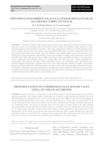 Syahidurrohman, Mohammad Fariz (2019) Implementasi Kompresi Nilai Data Sensor Menggunakan Algoritma Lempel Ziv Welch. Other thesis, Universitas Komputer Indonesia.