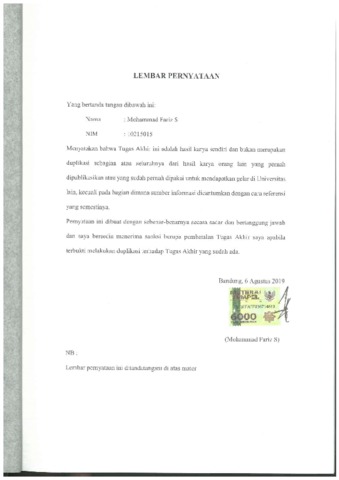 UNIKOM_Mohammad Fariz S_Lembar Pernyataan.pdf - Published Version