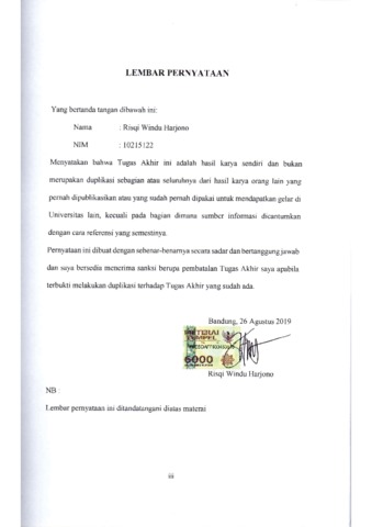 UNIKOM_Risqi Windu Harjono_Lembar Pernyataan.pdf - Published Version