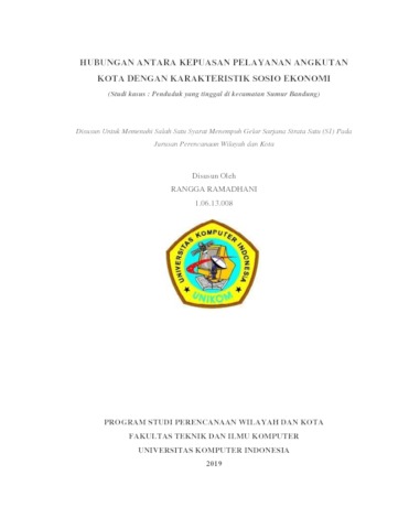 Ramadhani, Rangga (2019) Hubungan antara Kepuasan Pelayanana Angkutan Kota dengan Karakteristik Sosio Ekonomi. Other thesis, Universitas Komputer Indonesia.