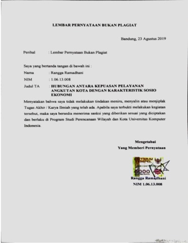 UNIKOM_RANGGA RAMADHANI LEMBAR PERNYATAAN BUKAN PLAGIAT.pdf - Published Version
