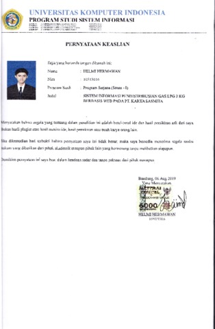 Hermawan, Helmi (2019) Sistem Informasi Pendistribusian Gas Lpg 3 Kg Berbasis Web Pada Pt. Karya Sasmita. Other thesis, Universitas Komputer Indonesia.