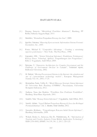 | Uncontrolled Keywords: | Arsitektur Sistem Informasi, eprocurement, TOGAF ADM. |