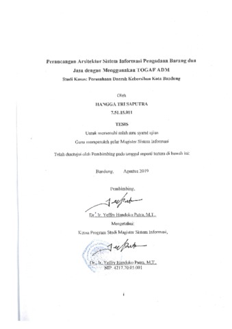 Saputra, Hangga Tri (2019) Perancangan Arsitektur Sistem Informasi Peengadaan Barang dan Jasa dengan Menggunakan TOGAF ADM Studi Kasus : Perusahaan Daerah Kebersihan Kota Bandung. Masters thesis, Universitas Komputer Indonesia.