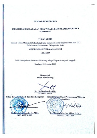 Alamsyah, Mochammad Indra (2019) Identifikasi Kelayakan Desa Wisata Pakualam Kabupaten Sumedang. Other thesis, Universitas Komputer Indonesia.