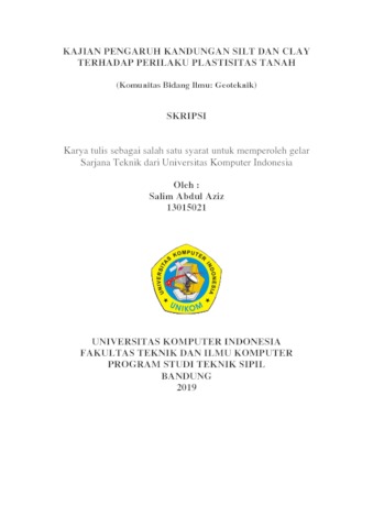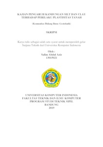 Aziz, Salim Abdul (2019) Kajian Pengaruh Kandungan Silt Dan Clay Terhadap Perilaku Plastisitas Tanah. Other thesis, Universitas Komputer Indonesia.