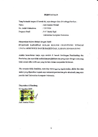 Fitriani, Asri Annisa (2019) Evaluasi Kapasitas Kolam Retensi Cieunteung Sebagai Upaya Mereduksi Banjir Baleendah, Kabupaten Bandung. Other thesis, Universitas Komputer Indonesia.