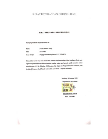 Suteja, Fauzi Pratama (2020) Supply Chain Management Di PT. Starpia. Other thesis, Universitas Komputer Indonesia.