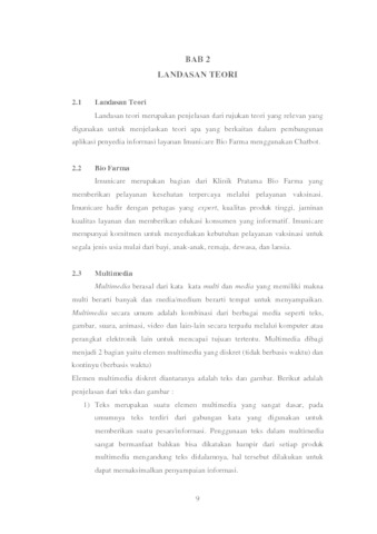 | Uncontrolled Keywords: | : chatbot, text mining, natural language processing, media informasi, Imunicare. |