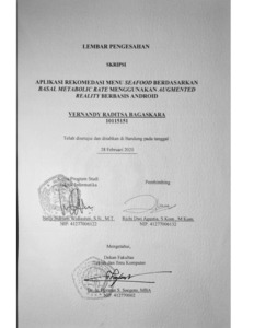 Bagaskara, Vernandy Raditsa (2020) Aplikasi Rekomedasi Menu Seafood Berdasarkan Basal Metabolic Rate Menggunakan Augmented Reality Berbasis Android. Other thesis, Universitas Komputer Indonesia.