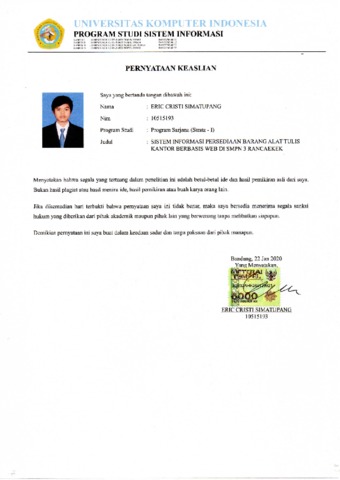 UNIKOM_Eric Cristi Simatupang_Pernyataan Keaslian.pdf - Published Version
