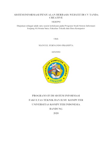 Pradipta, Manuel Fernando (2020) Sistem Informasi Penjualan Berbasis Website Di Cv Tanda Creative. Other thesis, Universitas Komputer Indonesia.