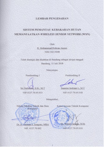 Ansori, R. Mohammad Ridwan (2018) Sistem Pemantau Kebakaran Hutan Memanfaatkan Wireless Sensor Network (Wsn). Other thesis, Universitas Komputer Indonesia.