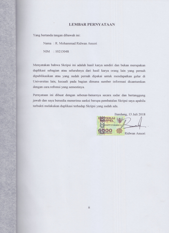 UNIKOM_R Mohammad Ridwan Ansori_Lembar Pernyataan.jpg - Published Version