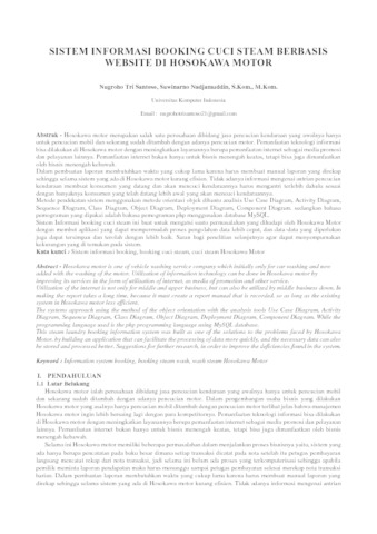 Santosa, Nugroho Tri (2018) Sistem Informasi Booking Cuci Steam Berbasis Website Di Hosokawa Motor. Other thesis, Universitas Komputer Indonesia.