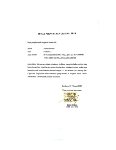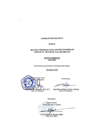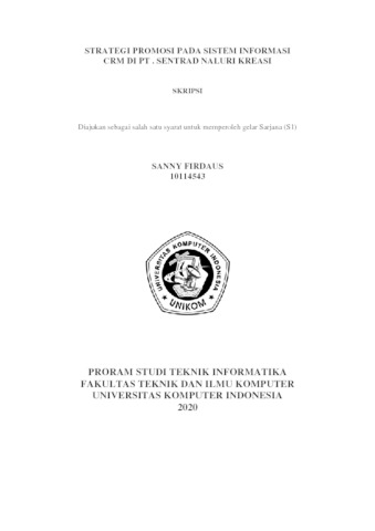 Firdaus, Sanny (2020) Strategi Promosi Pada Sistem Informasi Crm Di Pt. Sentrad Naluri Kreasi. Other thesis, Universitas Komputer Indonesia.