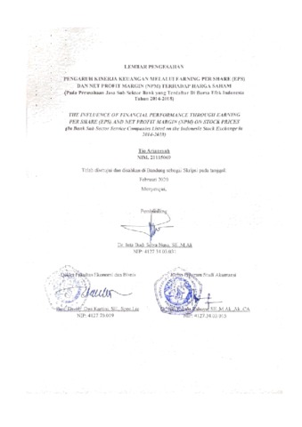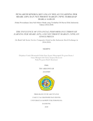 Ariansyah, Tio (2020) Pengaruh Kinerja Keuangan Melalui Eps Dan Npm Terhadap Harga Saham (Pada Perusahaan Jasa Sub Sektor Bank yang Terdaftar Di Bursa Efek Indonesia Tahun 2014-2018). Other thesis, Universitas Komputer Indonesia.