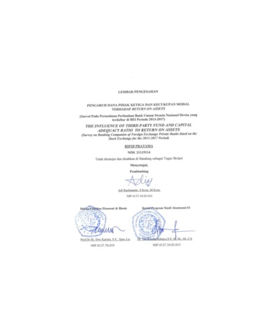 Pratama, Rifqi (2020) Pengaruh Dana Pihak Ketiga Dan Rasio Kecukupan Modal Terhadap Return On Assets (Survei Pada Perusahaan Perbankan Bank Umum Swasta Nasional Devisa Yang Terdaftar Di Bei Periode 2013-2017). Other thesis, Universitas Komputer Indonesia.