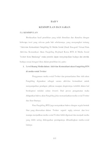 Saran dari penelitian ini adalah Kepada akun Fangirling BTS diharapkan dapat lebih bijak dalam berkomunikasi di media sosial agar tidak sampai mengganggu suatu kelompok karena komunikasi yang terjadi di media siber bisa menjadi artefak atau terdokumentasikan yang bisa dilihat sewaktu-waktu oleh entitas lainnya di dalam dunia virtual. Bagi peneliti selanjutnya diharapkan maka hendaknya harus terlebih dahulu ikut terjun dalam seluruh kegiatan objek penelitian, sehingga nantinya akan mendapatkan beberapa artefak budaya yang dapat dikaji lebih mendalam, dengan begitu budaya internet yang diteliti pun akan menjadi spesifik dan mendalam dalam melihat bagaimana suatu budaya internet dapat terbentuk dan menjadi fenomena sosial yang ada pada masyarakat sebagai penghasil budaya tersebut.