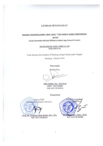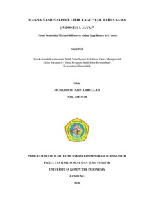 Amrullah, Muhammad Aziz (2020) Makna Nasionalisme Dalam Lirik Lagu “Tak Harus Sama (Indonesia Jaya)”. Other thesis, Universitas Komputer Indonesia.