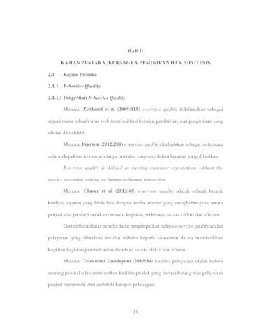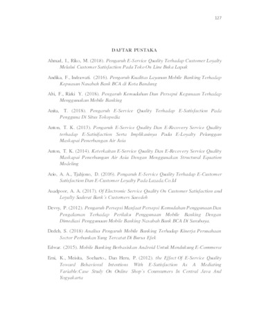 Hasil penelitian berdasarkan analisis deskriptif menunjukan bahwa responden merasakan E-Service Quality yang baik dan E-Recovery Service Quality yang cukup baik serta tanggapan responden merasa baik dalam E-Satisfation. Sedangkan Analisa verifikatif menunjukan bahwa E-Service Quality secara parsial berpengaruh signifikan terhadap E-Satisfaction. E-Recovery Service Quality secara parsial berpengaruh signifikan terhadap E-Satisfaction. E-Service Quality Dan E-Recovery Service Quality secara simultan berpengaruh terhadap E-Satisfaction.