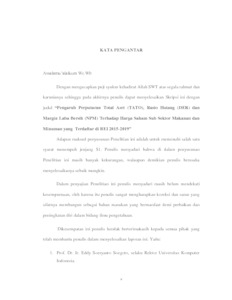 Uncontrolled Keywords: | Perputaran Total Aset (TATO),Rasio Hutang (DER), Margin Laba Bersih (NPM) dan Harga saham |