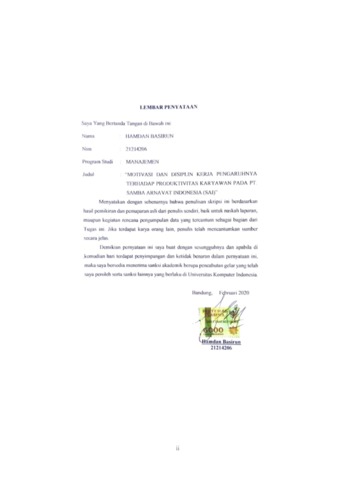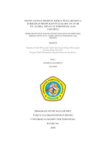 Basirun, Hamdan (2020) Motivasi Dan Disiplin Kerja Pengaruhnya Terhadap Produktivitas Karyawan di PT. Samba Arnavat Indonesia (Sai) Jakarta. Other thesis, Universitas Komputer Indonesia.