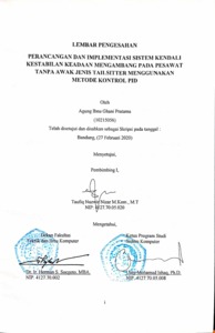 | Uncontrolled Keywords: | Tailsitter, IMU, kendali, PID, mengambang/hovering |