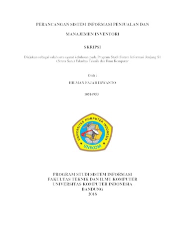 Irwanto, Hilman Fajar (2018) Perancangan Sistem Informasi Penjualan dan Manajemen Inventori. Other thesis, Universitas Komputer Indonesia.