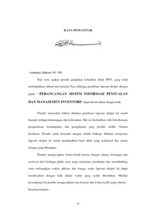 Sistem Informasi Penjualan dan Inventori Manajemen merupakan sistem informasi manajemen yang menghasilkan berbagai informasi yang dapat berguna untuk mendukung kegiatan pasokan, penjualan barang. Aplikasi Sistem Informasi Penjualan dan Inventori Manajemen yang dihasilkan mampu mengelola data persediaan, penjualan barang. Sehingga dapat mendukung dan mempermudah dalam proses bisnis yang berjalan di perusahaan. Metode pendekatan sistem yang digunakan pada sistem informasi ini menggunakan Object Oriented (Object Oriented), yang menekankan pada pemecahan masalah perangkat lunak yang berdasarakan hasil perancangan aplikasi Sistem Informasi Penjualan dan Inventori Manajemen menunjukkan bahwa peran aplikasi komputer dalam sistem informasi sangat penting sebagai pendukung dalam meningkatkan kualitas penjualan dan aktivitas jasa di lingkungan perusahaan.