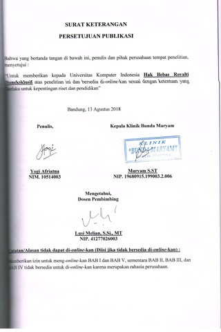 Afriatna, Yogi (2018) Sistem Informasi Rekam Medis Di Klinik Bunda Maryam. Other thesis, Universitas Komputer Indonesia.