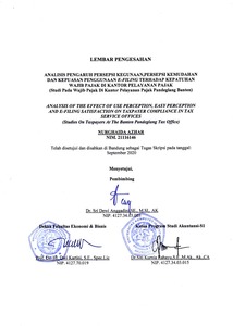 Azhar, Nurghaida (2020) Analisis Pengaruh Persepsi Kegunaan,Persepsi Kemudahan Dan Kepuasan Penggunaan E-Filing Terhadap Kepatuhan Wajib Pajak Di Kantor Pelayanan Pajak Pandeglang Banten. Other thesis, Universitas Komputer Indonesia.