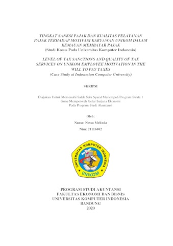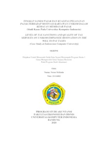 Melinda, Nessa (2020) Tingkat Sanksi Pajak Dan Kualitas Pelayanan Pajak Terhadap Motivasi Karyawan Unikom Dalam Kemauan Membayar Pajak (Studi Kasus Pada Universitas Komputer Indonesia). Other thesis, Universitas Komputer Indonesia.