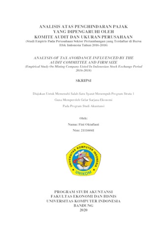 Oktafiani, Fini (2020) Analisis Atas Penghindaran Pajak Yang Dipengaruhi Oleh Komite Audit Dan Ukuran Perusahaan (Studi Empiris Pada Perusahaan Sektor Pertambangan Yang Terdaftar Di Bursa Efek Indonesia Tahun 2016-2018). Other thesis, Universitas Komputer Indonesia.